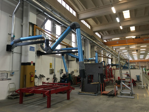 Abbiamo realizzato l’ultimo step del più grande impianto di aspirazione fumi di saldatura completamente automatizzato presente in italia, 100 postazioni dotate di sistema automatico di apertura aspirazione quando l’operatore inizia a saldare, con controllo della portata aspirata in funzione dei saldatori operativi.