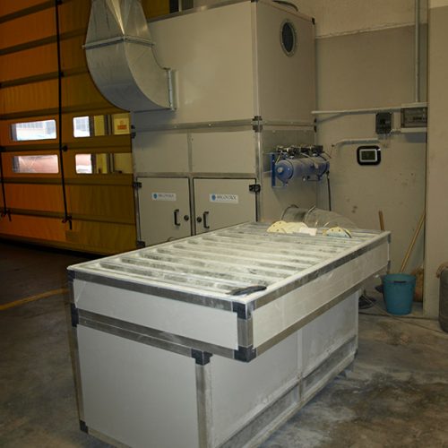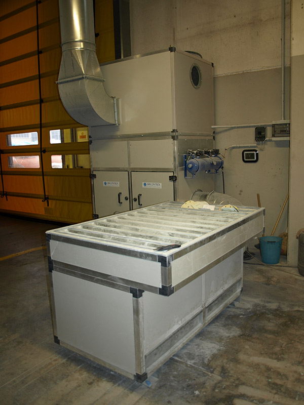 Home /// Products /// Aspiration and filtration for industries /// Air extraction benches /// Air extraction bench for vases smoothing with a self-cleaning filter