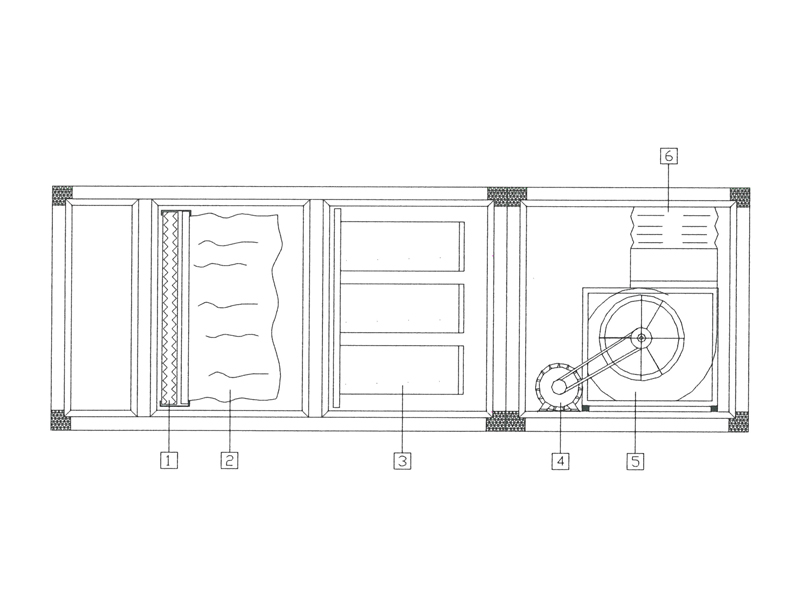 L’unità AIRMULTIDEPUR è realizzata con una struttura modulare, chiusa con pannellature in lamiera zincata o a richiesta in acciaio INOX AISI 304, è dotata di idonee porte d’ispezione, atte alla manutenzione della centrale stessa; le sezioni filtranti sono inserite in apposite guide, che ne permettono la rapida estrazione, facilitando la pulizia e l’eventuale sostituzione.