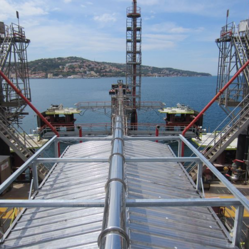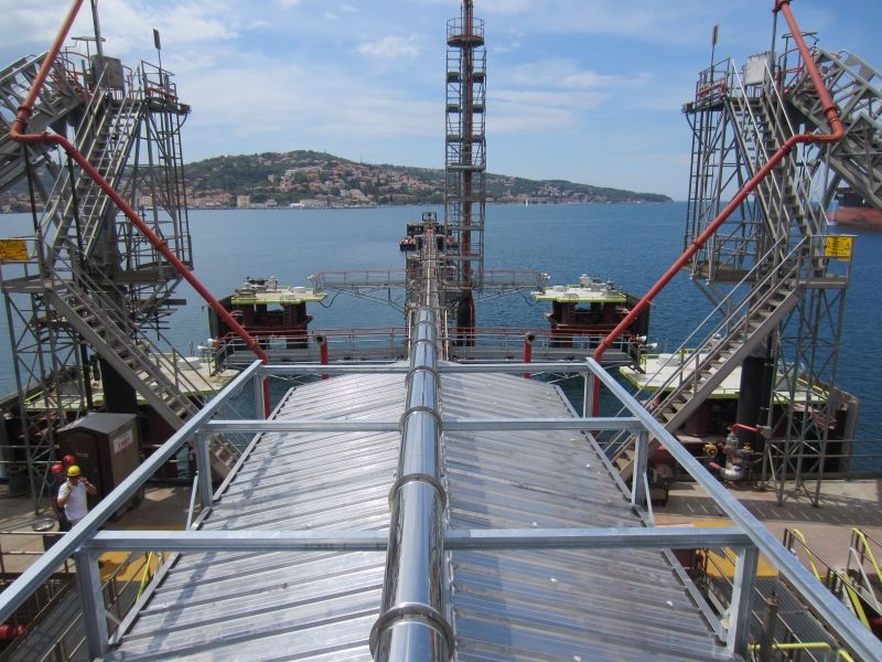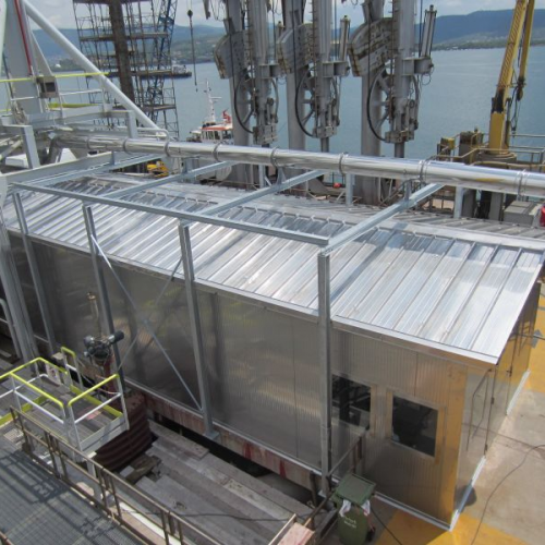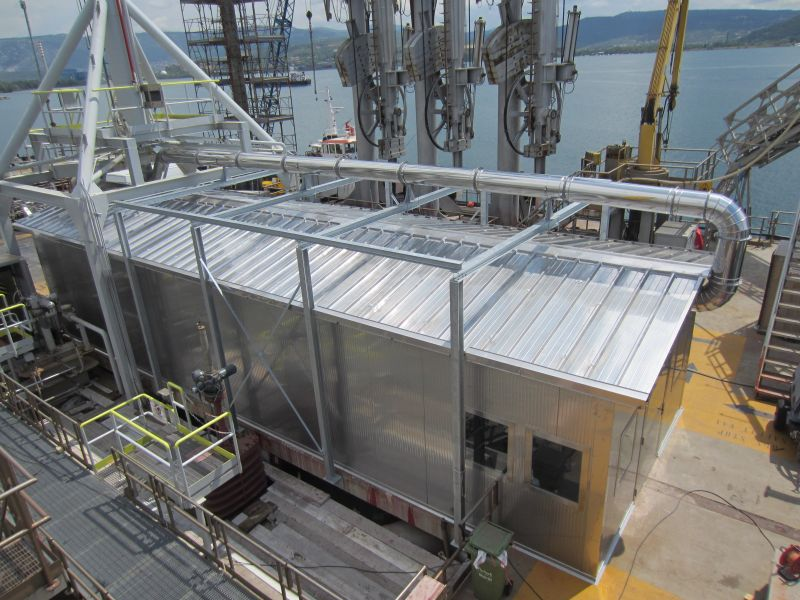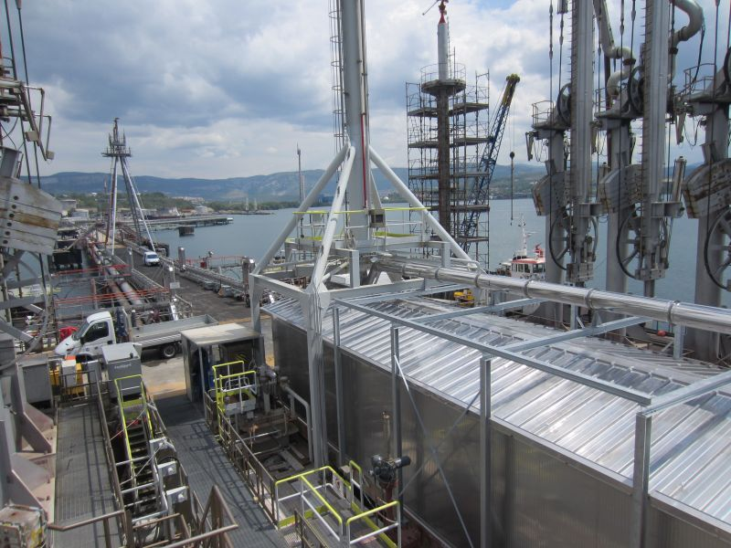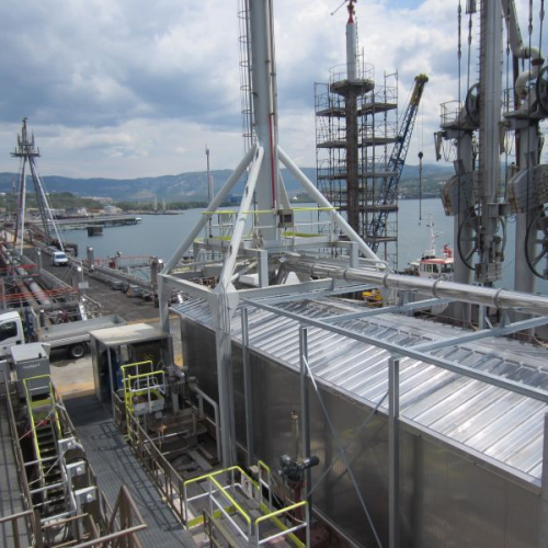 Secondo impianto di pressurizzazione per lo scarico petroliere, con la funzione di proteggere gli operatori e i macchinari durante la fase di scarico del petrolio dalle navi ed inquinanti del tipo IPA (idrocarburi policiclici aromatici).