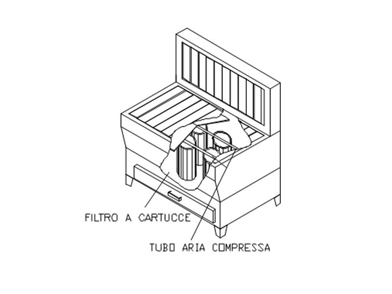Banco aspirante con filtri a cartucce con pulizia ad aria compressa con apertura manuale.