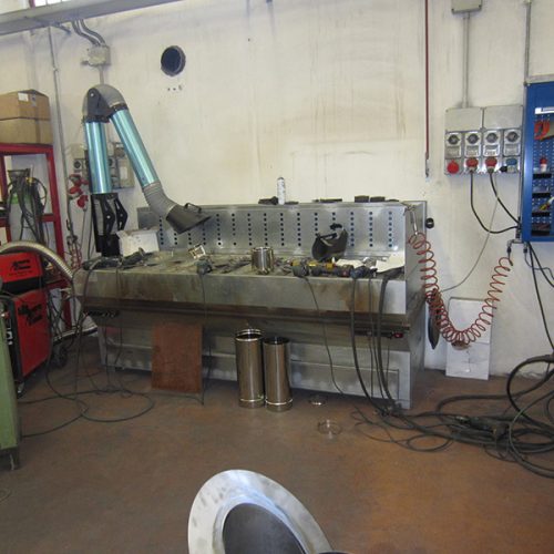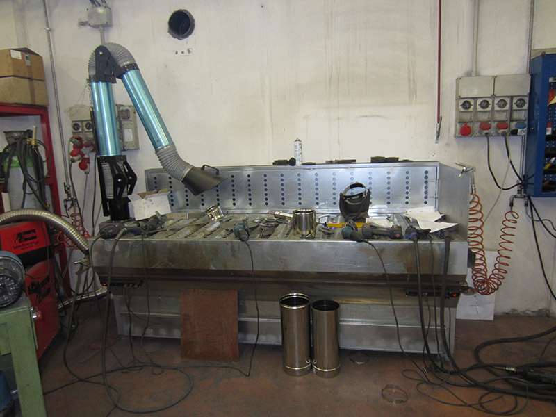 Banco aspirante per saldatura e molatura pezzi in acciaio inox con braccio aspirante