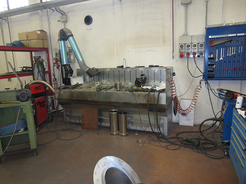 Pezzi in acciaio inox con braccio aspirante, filtro e aspiratore esterno