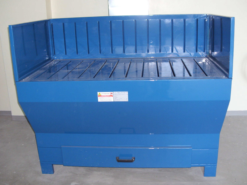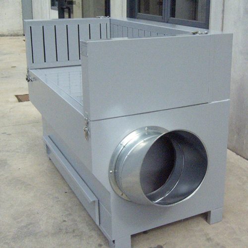 Banco aspirante per saldatura con piano e pareti aspiranti, con pareti chiuse svuotabili