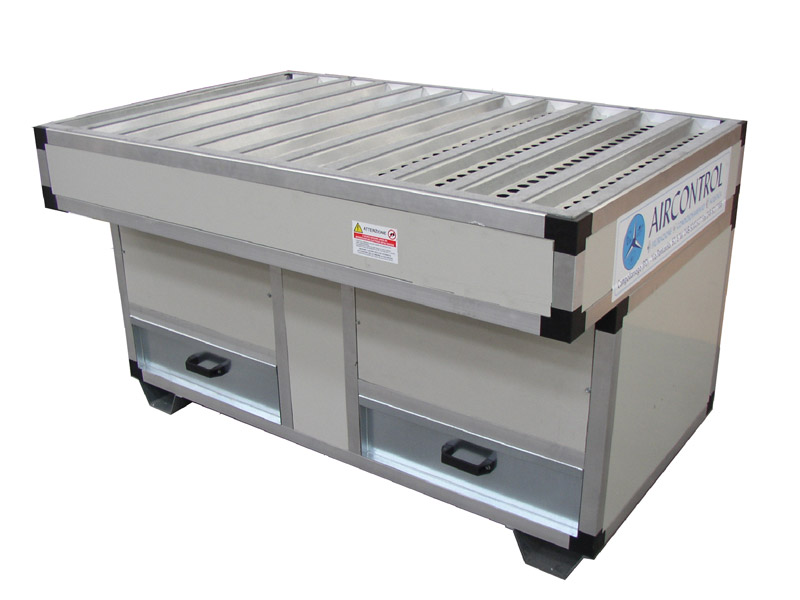 • Piano di lavoro aspirante, costruito in lamiera zincata, dotato di idonei fori calibrati, asportabile, con capacità di carico di circa 150 kg/mq.