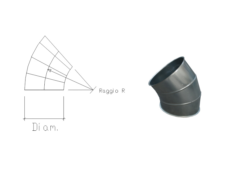 CURVA 45° R.M.= 1,5 DIAM. COD. 111/diametro
