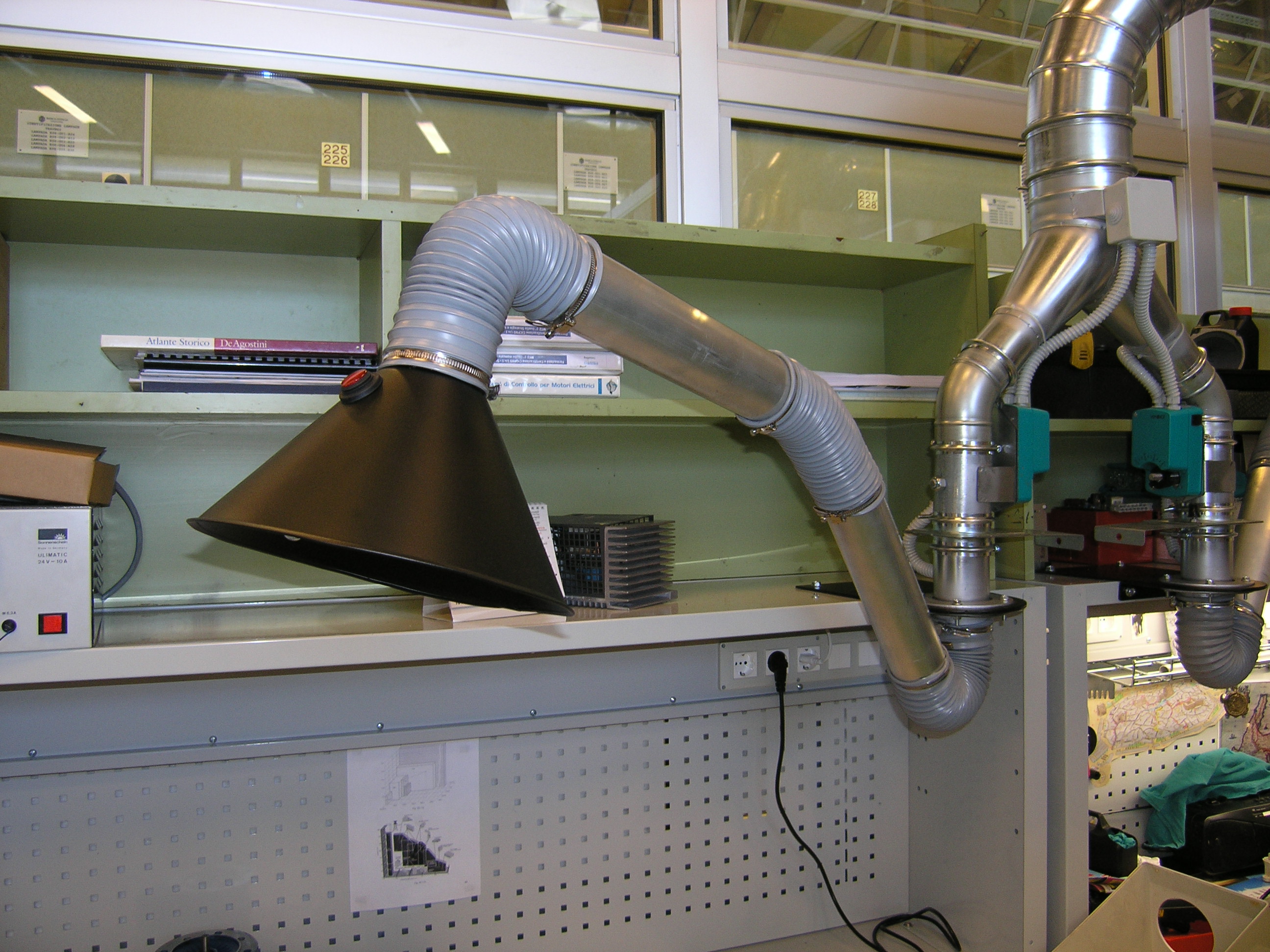 Braccio aspirante per la captazione localizzata di vapori, fumi, aeriformi in genere, costituito da: