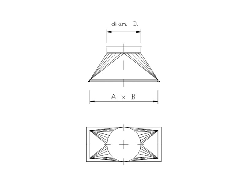 TRAMOGGIA DA QUADRO A TONDO CON FLANGIA IN PROFILO COD.137/diametro D.dimensioni dei lati bocca rettangolare non superiori a due volte il diametro.